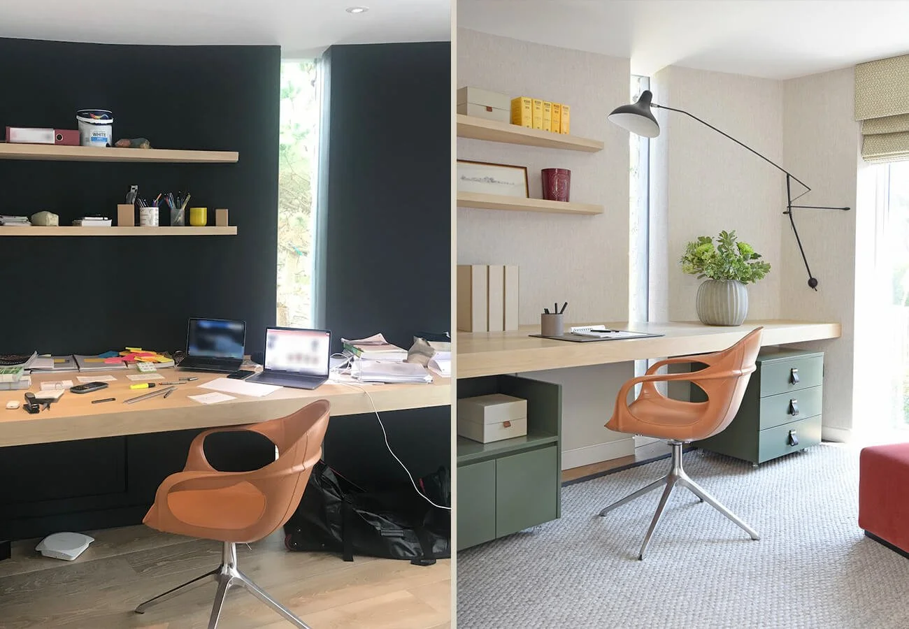 A bright, inviting and sophisticated work space. This refreshed colour palette & clever storage use provided the perfect WFH hideaway.